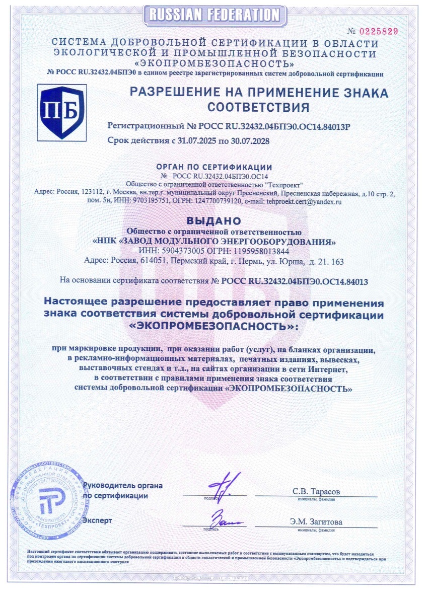 Ознакомиться с сертификатами соответствия на котлы наружного размещения можно на нашем сайте. По завершению производства котла наружного размещения Вы получаете паспорт изделия, руководство по эксплуатации, КНР со всеми необходимыми маркировками и табличками от производителя.